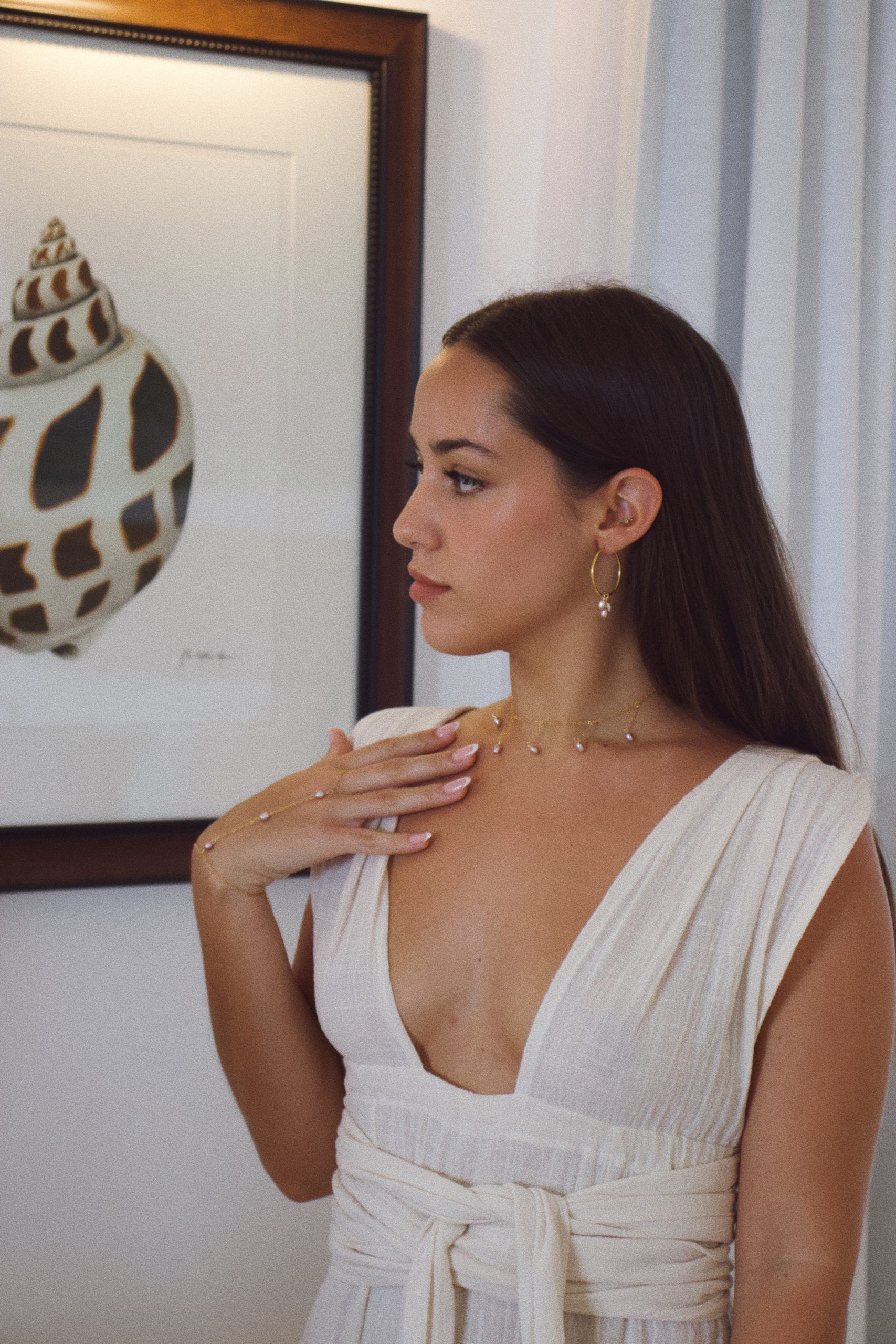 Découvrez notre chaîne de mains Tiara, une alliance parfaite de finesse, de délicatesse et d’élégance. Tiara est orné de perles de culture d’eau douce violette, apportant une touche de sophistication naturelle. Ces perles, soigneusement sélectionnées, rehaussent la beauté de cette pièce. Portez cette chaîne de mains pour une élégance discrète et raffinée, idéale pour toutes les occasions spéciales.